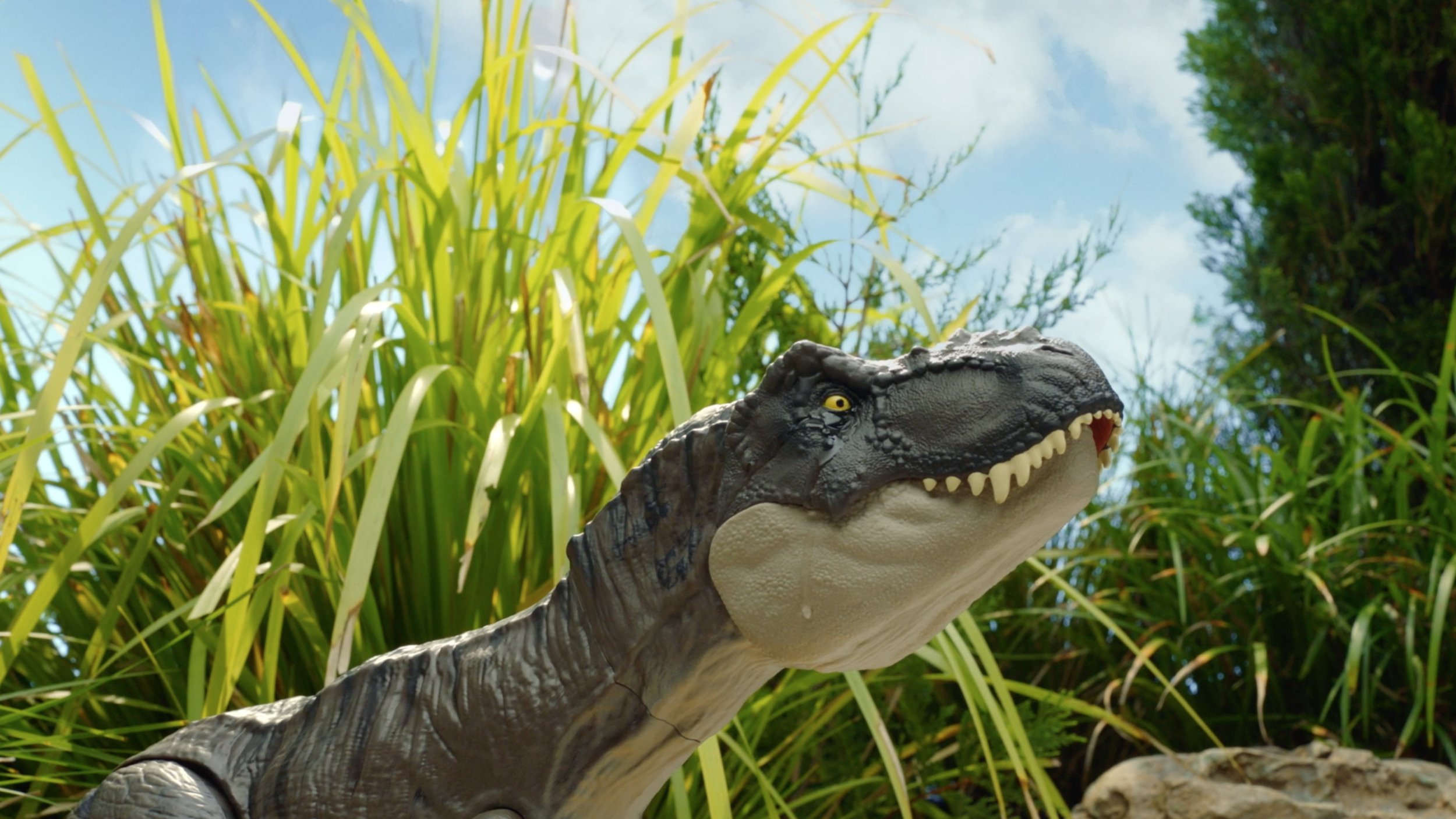 The little dinosaurs race to the greatest toy sale in the universe, followed by the big and scary T-Rex.